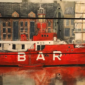 The coast is a continuing motif throughout his work. From cluttered docksides to wide open expanses, he finds Britain's coastline fascinating in all aspects. His characteristically unfettered, impressionistic style best renders waves, skies and rocky cliffs of this isle, whilst his imagery of boats and craft tends towards observed detail.